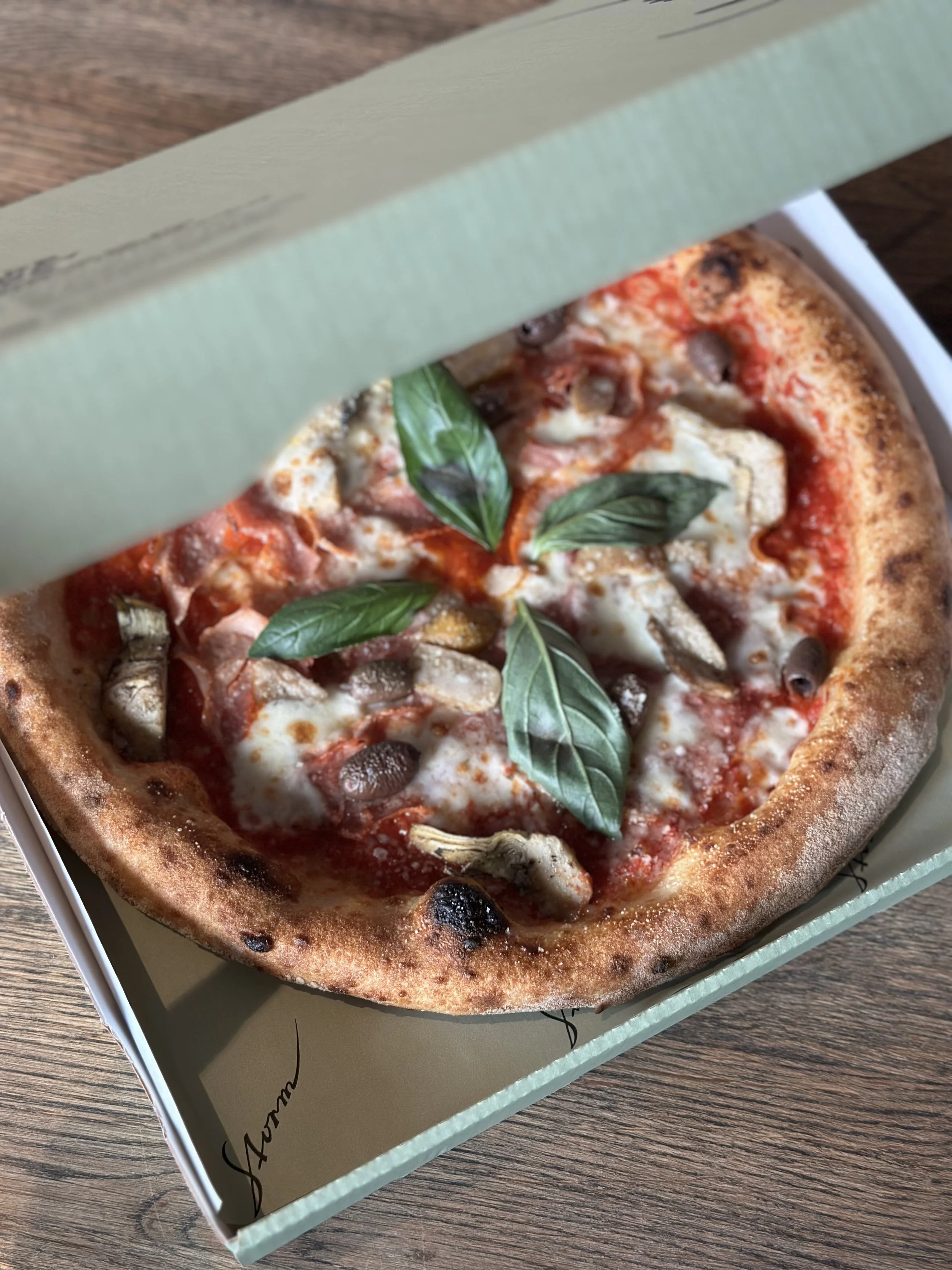 Vores napolitanske pizza er det modsatte af “fast food”. Vores surdejspizza er ikke noget, vi skynder os med. Dejen får lov at fermentere i op til 72 timer, så smag, struktur og lethed udvikler sig helt naturligt.